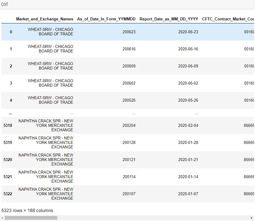 df2 = pd.merge(COT[COT['Market_and_Exchange_Names'].isin(['WHEAT-SRW - CHICAGO BOARD OF TRADE'])], df1, left_index= True, right_index = True)